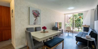 Descubre este exclusivo apartamento en venta ubicado en una zona residencial de alta demanda. Con 3 habitaciones, 2 baños y 2 parqueaderos, este inmueble de 75.73 metros cuadrados ofrece un ambiente acogedor y funcional. Disfruta de su balcón con vista exterior, cocina integral tipo Americano, sala-comedor con chimenea, y acabados de alta calidad como piso laminado y closet en todas las habitaciones. El edificio cuenta con ascensor, sauna, salón social, salón de juegos niños, gimnasio, zona de BBQ, y vigilancia 24/7. Vías de acceso estación Transmileno, Mazuren y 146 rodeado de parques y centros comerciales. ¡Un lugar ideal para tu familia!