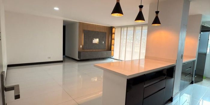 Venta de Apartamento Municipio Itagüí Sector: Suramérica Piso 23 Estrato: 4 Área 112 m2 • 3 Alcobas • 2 Closet * 1 Vestier • 2 Baños cabinados • Cocina Integral con barra * Sala comedor * 1 estudio en hall • 1 balcón grande • parqueadero cubierto doble lineal • Cuarto útil • Red de gas Precio: ???? 720’000.000