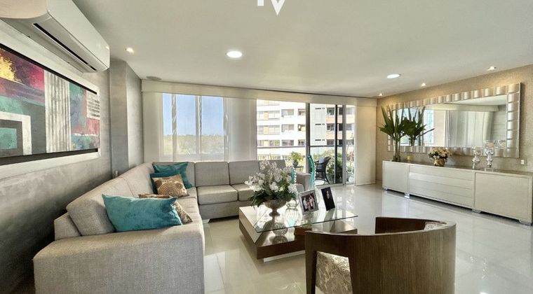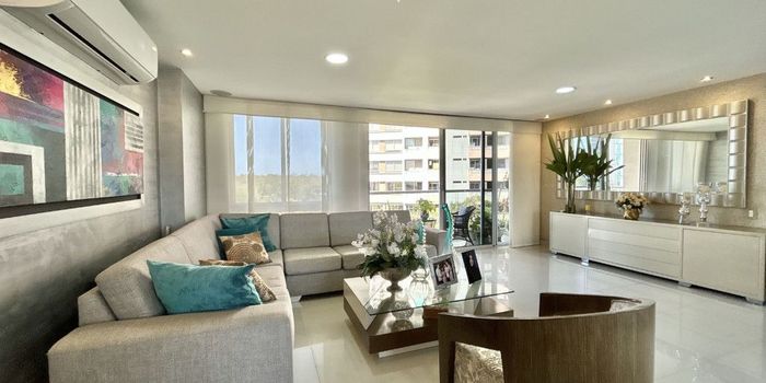 Este apartamento de 145,06 m² ofrece una distribución pensada para disfrutar cada ambiente. Los pisos en porcelanato acompañan una zona social generosa donde sala, comedor y estudio se integran con naturalidad, extendiéndose hacia un balcón que enmarca la vista y aporta luz y brisa durante todo el día. La cocina integral cerrada, práctica y bien equipada, se complementa con cuarto-baño de servicio, zona de labores independiente y baño social para las visitas. En el área privada, el apartamento ofrece tres habitaciones, cada una con baño interno, destacándose la alcoba principal con walking closet, diseñada para quienes valoran comodidad y orden en su día a día. Incluye dos parqueaderos y depósito de 6 m². La ubicación es estratégica: a pasos de PriceSmart, con acceso ágil a la Avenida Circunvalar y la vía hacia Cartagena, en un sector residencial consolidado y muy bien conectado. El conjunto residencial, de tres torres de 14 pisos y cerca de 10 años de construcción, se distingue por su buen mantenimiento y una oferta de amenidades pensada para la vida cotidiana: gimnasio, salón social climatizado y abierto, dos amplias piscinas cubiertas rodeadas de jardín, zona BBQ, áreas infantiles, grama sintética para deporte de niños, caminadoras y zonas verdes para mascotas. Un apartamento que logra algo cada vez más escaso: espacio, vista y una vida residencial completa en una ubicación estratégica.