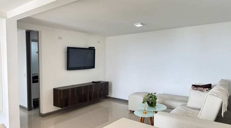 Apartamento en venta en unidad cerrada con fácil acceso desde la av principal, centro comerciales, rutas de transporte publicos, restaurantes y servicios complementarios. Piso en porcelanato y madera, sala ,comedor, estudio, estar de tv, 2 alcobas con baño y vestier en la principal, 2 baños, cocina integral abierta tipo americano, zona de ropas, útil, balcon y parqueaderos independientes cubiertos. Conjunto cerrado con ascensor, piscina, salon social, sauna, turco, parques infantiles, placa polideportiva, cancha de squash, zonas verdes, vigilancia 24 horas, citofono y circuito cerrado de tv.inmubles sujetos a verificacion de disponibilidad