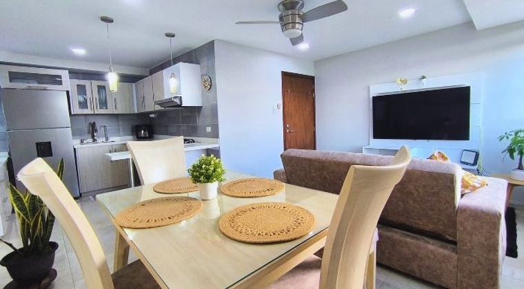 Apartamento en venta ubicado en cuarto piso de edificio con acceso por escaleras, en el barrio Departamental de Cali, un sector residencial con alta conectividad. La propiedad ofrece dos habitaciones con clóset, la principal con baño privado, baño social, sala-comedor, cocina de diseño moderno y baños actualizados, con acabados contemporáneos que aportan funcionalidad al espacio. Cuenta con garaje cubierto, un atributo relevante en la zona. Ubicado a una cuadra de la Autopista Suroriental, cerca de las canchas panamericanas, Escuela Nacional del Deporte, piscinas olímpicas, Edificio de Colores, Clínica Imbanaco, centros comerciales Centro Sur y Palmetto, supermercados D1 y Merca Mío, y con fácil acceso a la Avenida Pasoancho y múltiples opciones de transporte público. Una alternativa adecuada para quienes buscan vivir o invertir en un sector central con buena proyección de demanda.