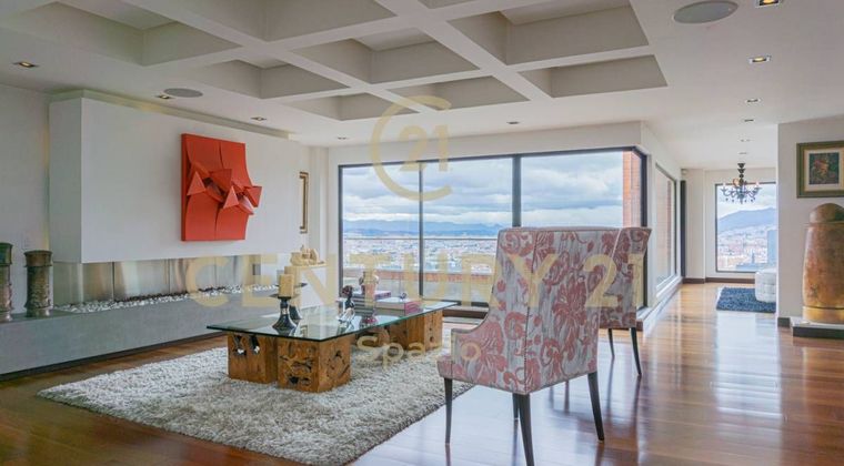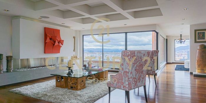 Te invitamos a conocer este espectacular apartamento para la venta, ubicado en el barrio el Refugio en Bogotá. Al ingresar al apartamento, nos recibe un amplio e iluminado hall, donde tenemos una espectacular panorámica de la ciudad. A pocos pasos, se encuentra una moderna e iluminada área social, con terraza y balcón también con vista a la ciudad. La sala se puede dividir en dos ambientes. El comedor es independiente con acceso a una terraza. El área social cuenta con su baño. La cocina es moderna, totalmente remodelada y muy amplia, con electrodomésticos de alta gama, junto a la cocina encontramos la zona de lavandería y el cuarto y baño de servicio. En esta primera planta, encontramos también un acogedor estudio y la cava. En el segundo piso encontramos 4 habitaciones, todas de muy buen tamaño, cada una con walk in closet y baño en suite. La alcoba principal tiene chimenea. En este segundo nivel encontramos también un family room y una terraza cubierta con jacuzzi, con una vista espectacular a la ciudad. Este maravilloso apartamento se complementa con 3 parqueaderos, dos en servidumbre y uno independiente y deposito. El edificio cuenta con planta eléctrica, salón social, gimnasio, piscina, cancha de squash y sauna.