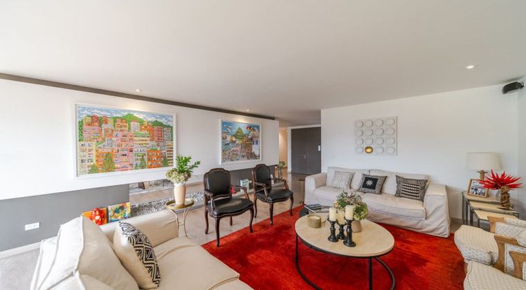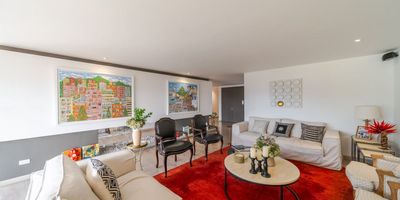 Apartamento de 350 metros en Bogotá. Cuenta con 3 garajes y 3 habitaciones, además de una habitación de servicio. Está ubicado en el piso 11 con vista hacia Bogotá en la sala y hacia un bosque de Cerros Orientales en las habitaciones. El apartamento cuenta con dos salas, comedor, estar de alcobas y tres jardines verticales internos. También cuenta con jacuzzi, espacio de oficina y electrodomésticos de alta gama. Se ha remodelado recientemente con carpintería de ALTEK. El apartamento se encuentra en el estrato 6. El edificio cuenta con salón comunal, planta eléctrica que cubre el 100% del consumo, sala de conductores y gimnasio. Además, dispone de 8 parqueaderos de visitantes. La zona donde se encuentra el apartamento es exclusiva y ofrece tranquilidad y seguridad. Está a pocos minutos de la zona financiera de Chapinero y Chico, con fácil acceso hacia el norte, sur u occidente de Bogotá.