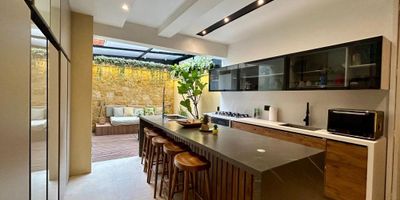 (19873) LÍNDISIMO APARTAMENTO REMODELADO EN EL REFUGIO. Siéntete en un espacio de ensueño en este maravilloso apartamento remodelado con muy buen gusto, evocando espacios del hermoso Barichara. Son 156,75m2 + 12m2 de terrazas. Ubicado en un segundo piso exterior muy iluminado, al ingresar encontrarás la preciosa cocina abierta con lindos acabados, ideal para deleitar y compartir con familia y amigos; seguida por una linda y acogedora terraza cubierta. La zona social independiente invita al relax junto a su chimenea a gas. Son 3 habitaciones de muy buen tamaño, cada una con su baño. La habitación principal tiene salida a una terraza descubierta. Adicionalmente cuenta con un precioso baño social con ducha y la zona de lavandería totalmente independiente. Complementan este apto dos garajes independientes y un depósito. El edificio está ubicado en la tranquila zona del Refugio, una cuadra arriba de la circunvalar con calle 92. Tiene salón social, gym, golfito y parqueaderos de visitantes. El edificio está automatizado y cuenta con conserje de lunes a sábado. Vías de acceso como la cra. 7, avenida circunvalar, calle 85, calle 92 y calle 94.