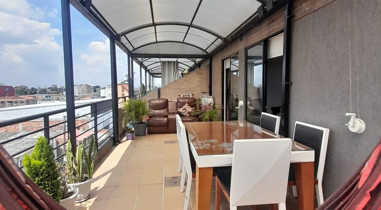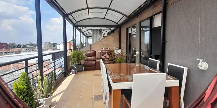 Excelente apartamento duplex, con terraza de uso exclusivo de 25 mt2, excelentes acabados, edificio con ascensor, parqueadero privado cubierto, amplios espacios, iluminado vista exterior, con Balcon en la Sala, cerca a la 100 , a diez minutos del centro comercial hayuelos, avda cali, con supermercados D1, Ara, y zona comercial a tan solo 5 minutos. Buen transporte publico.