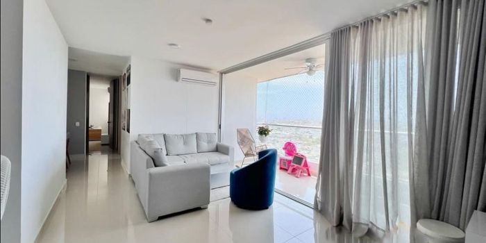 El Campestre - Cartagena Se vende sin muebles. Apartamento ubicado en edificio nuevo, cuenta con 3 habitaciones, 2 baños equipados con divisiones acero inoxidable y vidrio templado, Sala amplia tv, sala comedor, sala para visita, barra estilo bar y cocina enchapada en cerámica y mesón tipo mármol, zona de labores con espacio para lavadora y lavadero empotrado con mueble. Balcón exterior con vista calle principal del campestre. Accesorios y dotaciones: divisiones internas como ambientación, muebles con espejos grandes y barra tipo bar. Ambientación: Climatizados Cuartos y sala con aire acondicionado. Cerca de: complejos deportivos, colegios públicos y privados, jardines infantiles, iglesias católicas y cristianas, supermercados y almacenes varios, sucursales de bancos y corresponsales. Así: A 1 minuto de la pista de patinaje del campestre de competencias internacionales. A 1 minuto de colegios públicos. A 1 minuto de campo de softbol, campo de futbol y pista atlética para realizar caminatas y ejercicios. A 2 minutos de Supermercados Olímpica, Aras, D1. A 5 minutos de Supermercado Megatiendas A 3 minutos iglesia católica María Inmaculada del campestre A 2 minutos de súper giros, corresponsales de Bancolombia y otros. *******.