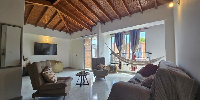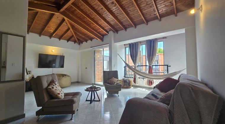 Apartamento en venta en unidad cerrada ubicado en sector central y entorno residencial, de fácil acceso y salida a vías principales, conexión a servicios complementarios y rutas de transporte publico. Cuenta con piso en baldosa, sala comedor, estar de tv, 2 alcobas con closet, baño en cada alcoba, baño social, cocina integral abierta tipo americano, zona de ropas, balcón, útil y parqueadero independiente cubierto. Conjunto cerrado sin ascensor, salón social, parque infantil, zonas verdes, vigilancia 24 horas y circuito cerrado de TV. Inmuebles sujetos a verificación de disponibilidad.