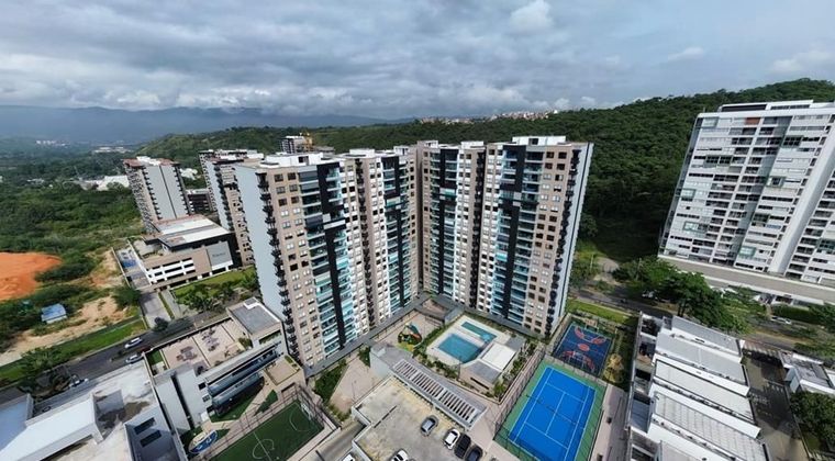 Cod.4117 apartamento en el piso 18 con vista a zonas verdes, 107 metros, 3 habitaciones , 2 baños , baño de visitas, sala comedor, cocina integral, zona de ropas, balcones, hall tv, 2 parqueaderos en lineal, locker, full zona social, ascensores, vigilancia las 24 horas.
