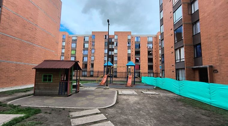 Apartamento en venta en Conjunto Alegria 4 de 50m2, con vista interior, ubicado en un 4to piso, acceso por escaleras, parqueadero comunal. Consta de 2 habitaciones, 1 baño, sala comedor, hall de alcobas, cocina integral y zona de lavandería. Tiene piso laminado en habitaciones, zona social y cerámico en cocina y baño. El conjunto cuenta con zonas verdes, bicicletero, salón social y vigilancia privada las 24 horas. Cerca a centro comercial Mediterráneo; cerca a almacenes de cadena como Tiendas D1; Vías de acceso por la Calle 15 y Carrera 19C. Soacha. 33472074018