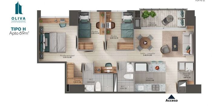 69.0 m2El inmueble cuenta con: