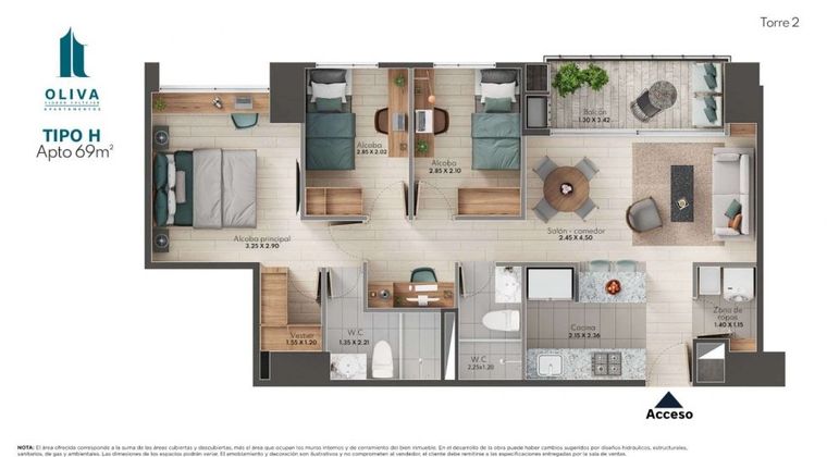 Cesión de derechos – Oliva Apartamentos | Ciudad Coltejer Apartamento en cesión de derechos en el Proyecto Oliva Apartamentos, ubicado en Ciudad Coltejer. Situado en piso 28, torre 2, con vista al oriente (interior), lo que permite excelente iluminación natural sin sol de la tarde (sin poniente). La cuota inicial se encuentra totalmente pagada. Valor de la cesión: $250.561.881 (valor a reconocer al vendedor). Saldo pendiente con la constructora: $314.438.119, pagaderos al momento de la entrega, mediante crédito hipotecario, leasing habitacional o recursos propios. El apartamento se entrega con acabados, no incluye clósets, cabinas de baño ni barra de cocina, lo que permite personalizar estos elementos al gusto del comprador. Entrega proyectada: septiembre 2026 En sala de ventas estan desde 721 millones