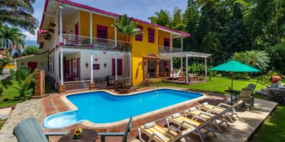 PV-25064-ht - VENTA DE HOTEL EN JERICÓ, CAUCA VIEJO. El Hotel cuenta con 8 habitaciones hermosas, todas con baño privado, agua caliente, aire acondicionado y ventilador, equipadas con armario, escritorio, perchero, camas, colchones y lencería nuevas de excelente calidad. El Hotel cuenta con miltiples zonas sociales como: Salón principal con TV de pantalla plana, mesa de ping pong y zona de bar. Salón con fuente y mesa de billar. Salón comedor. Deck, piscina, jacuzzi y turco frente al río Cauca, rodeados de jardines y vegetación exuberante. Corredores y balcones con una fuente en el jardín. Muchos pájaros y fauna silvestre. Cuenta con una cocina súper equipada con horno de gas, microondas, placa eléctrica de inducción, lavaplatos, etc. Alacena con cava. Y la Zona de Ropas con Lavadora y secadora. Cuenta también con Cuarto útil y para máquinas. Jardines y huerta. Parqueadero privado. Wifi. 2 barbecues. Este encantador hotel es una excelente oportunidad de inversión en una ubicación privilegiada y con todas las comodidades necesarias para ofrecer una experiencia inolvidable a sus huéspedes.