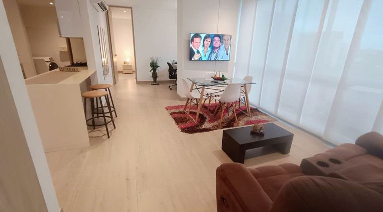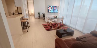 Apartamento fresco y luminoso con un area de m2, consta de sala, comedor, balcón con vista externa, cocina integral, zona de labores, baño, closet, pisos en porcelanato, parqueadero # 195 en sótano 3, edificio cuenta con ascensor, lobby tipo hotel, vigilancia 24/7, piscina, sauna, turco, salón social, excelente ubicación al norte, estrato 5, barrio El Poblado.