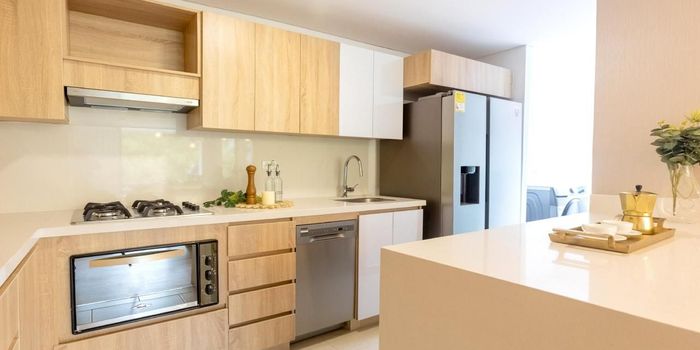 Cesión de derechos, entrega en septiembre 2025 Piso 9, vista a la montaña Área 87.88 metros 3 habitaciones 2 baños Cocina abierta Sala comedor Zona de ropas independiente Balcón Parqueadero Cuarto útil Unidad cerrada con gimnasio, piscina climatizada, juegos infantiles, salón social, zona de Coworking, zona verde y de mascotas y portería 24 horas Fotos tomadas del apto modelo Con colega