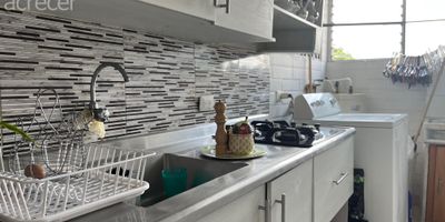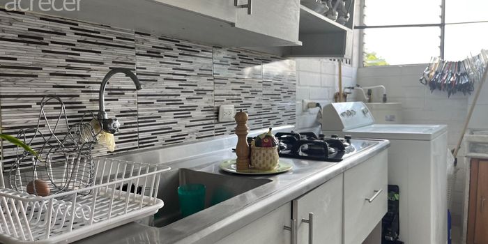 Apartamento en Envigado con 60,45 mts2, 3 alcobas, 2 banos, sala, comedor, cocina integral con barra, zona de ropas, balcon, 1 parqueadero. Porteria 24 horas, juegos para ninos, parqueaderos para visitantes, piscina