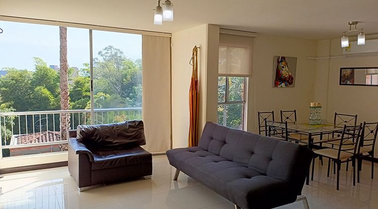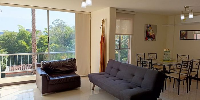 Apartamento amoblado en venta en unidad cerrada cerca a parques, vias principales, restaurantes, supermercados, rutas de transporte publico y servicios complementarios. Piso en porcelanato, sala comedor, 2 alcobas con baño en la principal, cocina integral abierta tipo americano, y parqueadero cubierto . Conjunto cerrado con salon social, parques infantiles, zonas verdes, vigilancia 24 hrs, citofonia y circuito cerrado de tv. *Inmuebles sujetos a verificación de disponibilidad.*