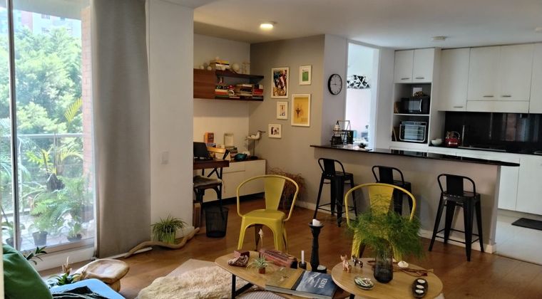 Apartaestudio en venta en unidad cerrada con doble acceso a vías principales, entorno muy tranquilo y de poco flujo vehicular. Cuenta con piso en madera, sala comedor, 1 alcoba con Vestier, baño privado, baño social, cocina integral abierta tipo americano, zona de ropas, balcón, útil y parqueadero paralelo cubierto. Conjunto cerrado con ascensores, gimnasio, salón social, sauna, turco, cancha de squash, zonas verdes, vigilancia y portería 24 horas y circuito cerrado de TV. Inmuebles sujetos a verificación de disponibilidad.