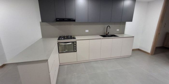Area 125 mts, 3 alcobas, 4 baños, vestier, sala comedor, cocina integral, zona de ropas, parqueadero cubierto, cuarto util, porteria 24 horas, piso 8, para estrenar.