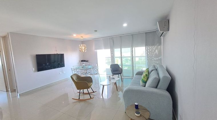 Apartamento de 84 m2, consta de sala, comedor, balcón, dos alcobas, alcoba principal con baño interno y vestier, baño auxiliar, closets, cocina integral, pantry, zona de labores, pisos en porcelanato, un garaje cubierto, edificio tiene citofono, vigilancia 24/7, ascensor, salón social, zona bbq, planta eléctrica, piscina en terraza con vista panorámica, cerca de colegios y/o universidades, supermercados, transporte público cercano, zona residencial.
