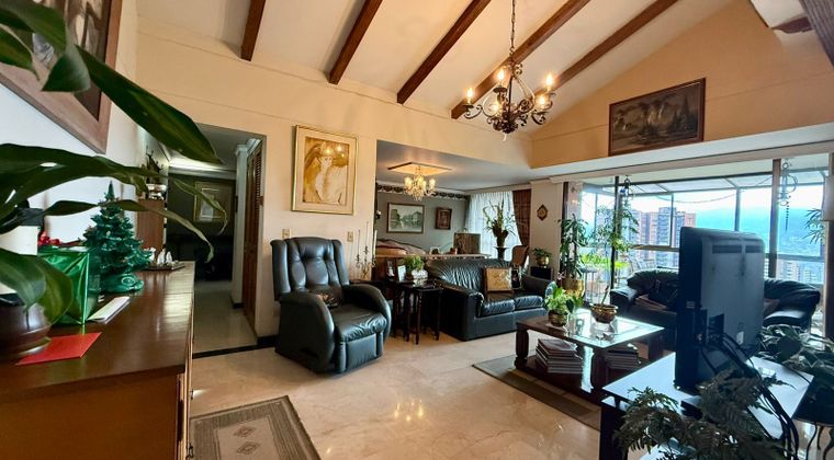 Ubicadisimo pent-house de 178 mts, piso 10, cuenta con 3 habitaciones , la principal amplia con baño, Vestier, y jacuzi , 2 baños completos, baño social, cuarto y baño del servicio, sala y comedor independiente, sala de star con biblioteca, balcón con excelente vista a la ciudad, cocina integral amplia, zona de lavandería, 2 parqueaderos independientes. El conjunto cuenta con portería, vigilancia 24 horas, lobby, zonas verdes, zona infantil, salón social, sendero peatonal. Cerca de supermercados la vaquita, centro comercial santa fe,. Vias de acceso Av el poblado, loma los balsos, transversal intermedia. precio Negociable.