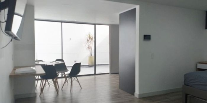 Apartaestudio exterior amoblado en venta cerca a centros comerciales, restaurantes, supermercados, parques, rutas de transporte publico y servicios complementarios. Piso en madera, puerta de seguridad, sala comedor, 1 alcoba con baño privado, baño social, cocina integral abierta, aire acondicionado y parqueadero independiente cubierto . Edificio con ascensor, vigilancia 24 hrs, citofonia, alarma, y circuito cerrado de tv. *Inmuebles sujetos a verificación de disponibilidad.*