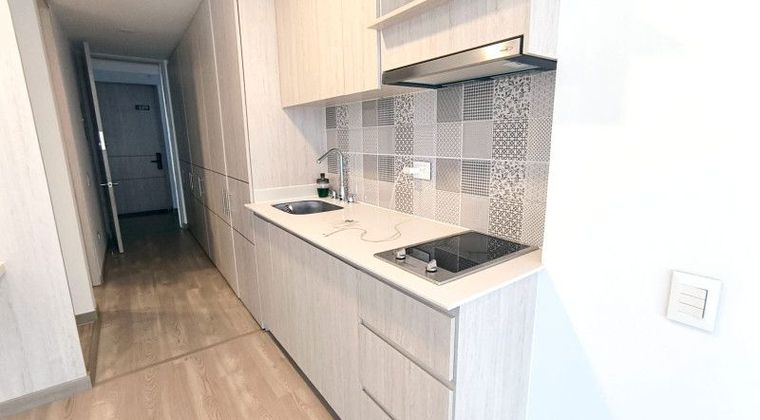 APARTAESTUDIO , Inversión , arrendable o habitable por su propietario . Vista exterior hacia occidente. Moderno proyecto ubicado en zona de universidades y equidistante al aeropuerto . Ubicado en piso 23 , con recepción y vigilancia veinticuatro horas. Recibo de domicilios y correspondencia. Consta de una habitación , un baño completo, área amplia de closets y gabinetes . Cocina de inducción, lavaplatos y espacio comedor . Dispone de amenidades ; lavandería comunal , coworking , salas reuniones , áreas de trabajo individual , sauna , jacuzzi , terraza BBQ . No dispone de parqueadero privado . Abajo de la circunvalar , cerca a la carrera 7ma con calle 63 .