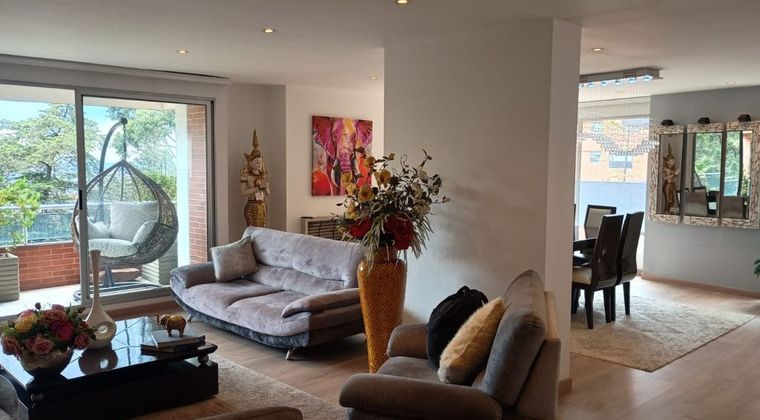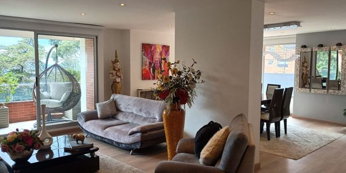 Exclusivo apartamento de estilo contemporáneo que combina elegancia y confort. Cuenta con tres alcobas, cada una con baño privado, además de baño social, cuarto y baño de servicio. Sus amplios y luminosos espacios incluyen estudio, sala y comedor independientes con chimenea, sala de estar y moderna cocina tipo americano equipada con estufa y calentador a gas, lavavajillas y zona de lavandería independiente. Acabados de primera como pisos en madera y cerámica, cortinas tipo screen y paneles, así como caldera de apoyo. Disfruta de una espectacular vista exterior, una terraza en “L” de 104 m² ideal para reuniones y un balcón adicional. Incluye tres garajes (dos en línea y uno independiente) y depósito. El edificio ofrece ascensor, parqueaderos de visitantes, zona infantil, gimnasio y salón comunal.