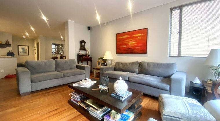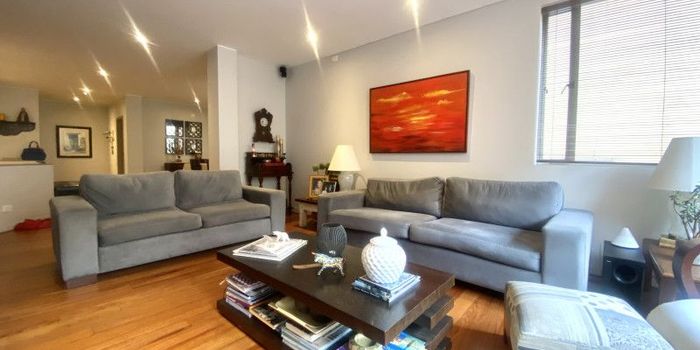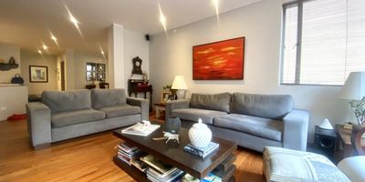 Apartamento en venta de 192m2 y 100m2 de jardines y terrazas en Rosales. Dúplex. Remodelado. Excelente arquitectura, diseño y acabados. Zona social amplia con comedor independiente, sala con grandes ventanales piso – techo, salida al espectacular jardin y terraza. Cocina con excelente iluminación natural y muy buen almacenamiento, comedor aux y balcón con vista al jardín. Nivel 1: Family room que integra las 3 Habitaciones, las cuales tiene salida al jardín. 2 Baños completos y social. 3 parqueaderos. Entorno natural. Zona residencial, cerca a Zona Financiera y Zona T.