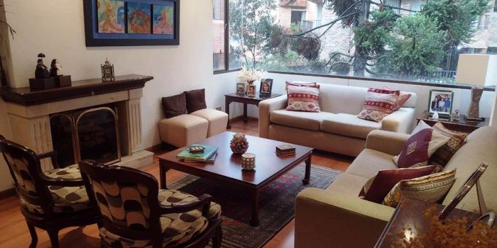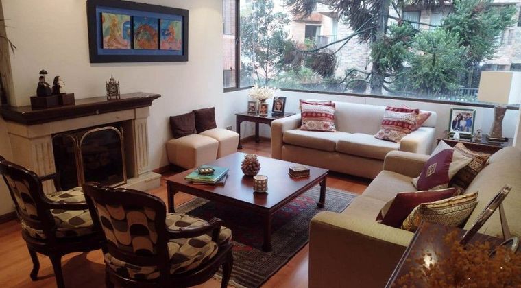 AV Gran apartamento ubicado en exclusivo sector residencial de Bogota, cerca de centros empresariales, clubes, Centros Comerciales, clínicas, Universidades y colegios. Buenas y cómodas vías de acceso. Apartamento y edificio en magnificas condiciones de mantenimiento, bellos y espaciosos ambientes logrados con materiales y especificaciones de gran calidad y gusto. 3 habitaciones, principal con baño privado, baño auxiliar y baño servicio, sala, comedor y estudio independientes, cuarto y baño del servicio, 2 parqueaderos en línea y depósito. Interior con vista a verde