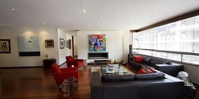 Espectacular penthouse, diseño interior de Gabriel Cure, trescientos mts cuadrados de terraza con vista trescientos sesenta grados, alcobas con walking closet, dos salas comedor independiente, gran estar de alcobas, cocina Italiana, jacuzzi y baño turco. la terraza tiene pasto natural, deck de madera, pergolas vidrios de seguridad, dos depósitos. El apto cuenta ademas con calefacción a gas, chimenea a gas, sonido arquitectónico, deposito en el sótano El edificio cuenta con gimnasio, parque infantil, teatrino, cuarto de escoltas.