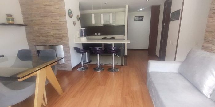 apartamento en venta, piso 15 con vista panorámica a los cerros, sobre la 1 con 64, un balcón amplio, excelente iluminación natural, consta de una habitación totalmente independiente con closet, Vestier y baño privado, sala comedor con chimenea funcional, cocina integral tipo americana abierta, zona de lavandería independiente, pisos en madera laminada, un garaje cubierto e independiente. Conjunto residencial de 6 torres de 30 pisos, 4 apartamentos por piso, parque infantil, zona bbq, dos salones sociales, cancha de squash, dos gimnasios, amplias zonas verdes.