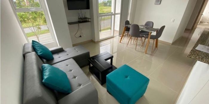Apartamento de 72 mts construidos, consta de sala comedor, balcón, cocina integral, zona de ropas, hall de tv o estudio, 3 alcobas, la principal con baño privado y Vestier, baño social, cuenta con 1 parqueadero cubierto, unidad con zonas verdes, piscina, salón social, parque infantil, en área de alta valorización y con acceso a transporte público.