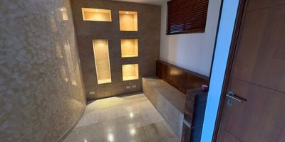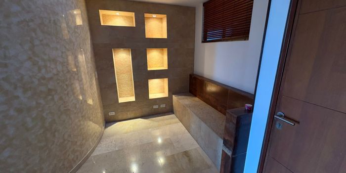 PENTHOUSE DE TRES PISOS. AREA 245 MTS + 133 MTS DE TERRAZA. PRIMER PISO HALL DE ENTRADA ESTUDIO BAÑO SOCIAL SALA COMEDOR INDEPENDIENTES DOS BALCONES AMPLIOS COCINA INTEGRAL GRANDE ZONA DE OFICIOS ALCOBA DEL SERVICIO CON BAÑO. SIGUIENTE NIVEL CUATRO ALCOBAS TRES BAÑOS PRINCIPAL CON VESTIER BAÑO CON BAÑERA SALA DE TELEVISION CUARTO DE LINOS. TERCER NIVEL TERRAZA . CUENTA CON PISCINA SALON SOCIAL CANCHA POLI DEPORTIVA BAÑO TURCO. DOS PARQUEADEROS Y UN DEPOSITO. VALOR 1'280.000.000 informes: ********** VIVIANA MONTAÑO