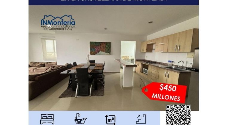 VENTA DE APARTAMENTO EN L A CASTELLANA DE MONTERÍA El apto cuenta con un area de 108 m2, por un valor de venta de $ 450 millones, consta de: - Tres habitaciones con close - Habitacion principal con vestier y baño - Un baño compartido para dos habitaciones - Baño social - Cocina, - Sala comedor - Zona de labores - Balcòn patio. Queda serca de via principal, banco, centro comercial, euro, peluquerias, exito, d1. INMONTERIA ASESORÍAS INMOBILIARIAS DE COLOMBIA ✅ Si desea recibir información adicional o visitar personalmente esta propiedad puede agendar una visita a las siguientes líneas de atención: * Línea WhatsApp de ventas ? ********** * Línea WhatsApp de arriendos ? ********** ✅ Para ofrecer su inmueble con nosotros puede contactar a las líneas de atención o escribir al siguiente correo electrónico ? [email protected] ? www.inmonteriainmobiliaria.com.co ? ? Síguenos en INSTAGRAM y FACEBOOK @inmonteria https://www.instagram.com/inmonteria