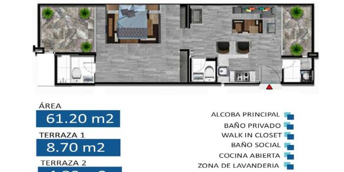 61.0 m2El inmueble cuenta con: