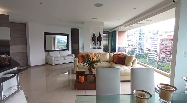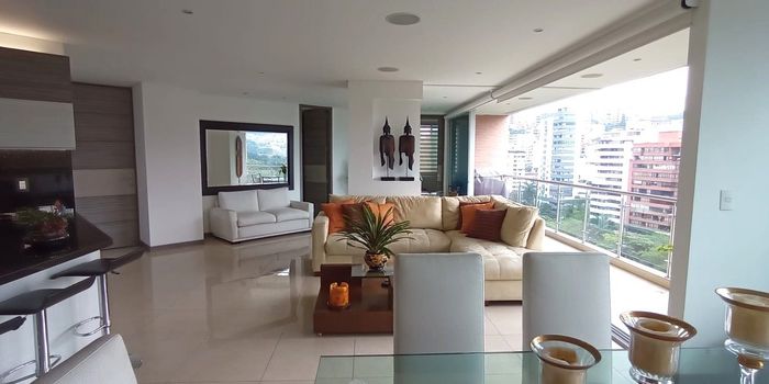 Vendo hermoso Apartamento con vista espectacular al rio, ciudad y montañas. Muy iluminado y fresco. Cuenta con caracteristicas exclusivas que hacen de este una exelente oportunidad para vivir feliz. Balcon muy amplio que abarca tanto sala como el comedor, todas las habitaciones tienen baño, la principal con Closet, Vestier y balcon, estudio, baño social. Cocina abierta tipo americano, con zona de lavanderia y cuarto de servicio con baño.Todo el apartamento cuenta con luz led y sonido, las cortinas de la sala y comedor hacia el balcon son electricas.Cuenta con 3 parqueaderos independientes y 3 depositos. El edificio cuenta con Piscina, Jacuzi, Zona de BBQ, Salon Social, porteria y vigilancia 24h