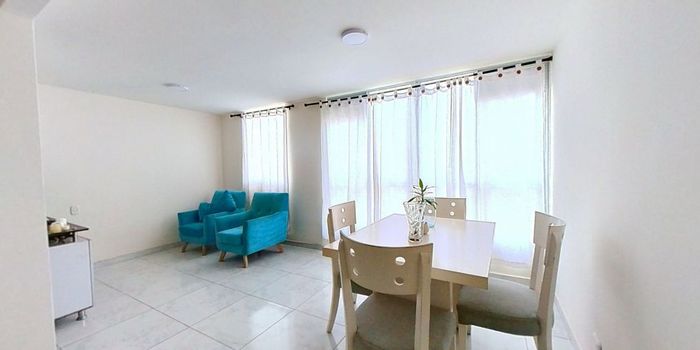 Apartamento en venta de 50m2, con vista interior, ubicado en un piso 3er (Torre 28 Apto 304), acceso por escaleras. Consta de 2 habitaciones, 2 baños, sala comedor, cocina integral y zona de lavandería. Tiene piso cerámico en todas sus zonas. El conjunto cuenta con salón social, piscina, zonas verdes, zona para niños y vigilancia privada las 24 horas. Cerca al centro comercial Único; cerca a paradas intermunicipales; Vías de acceso por la Calle 10. Mas Información en www.erguzinmobiliaria.inmo.co ID-17702275766