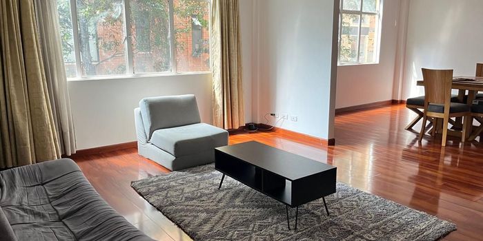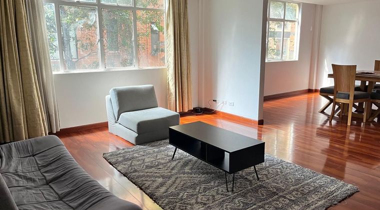 Apartamento amplio ubicado frente al Hospital Militar, en una primera planta sobre garajes. Remodelado completamente. Buena iluminación y ventilación. Se distribuye en salón comedor con chimenea piso laminado, cocina integral con estufa de gas natural y calentador . tres alcobas la principal con walking closets , un estudio , tres baños dos de ellos con división en vidrio, mesones en mármol, zona de lavandería independiente de la cocina. No tiene garaje. La cuota de administración incluye el valor de la factura de acueducto y alcantarillado del edificio. El edificio tiene cámaras y aseo comunal .