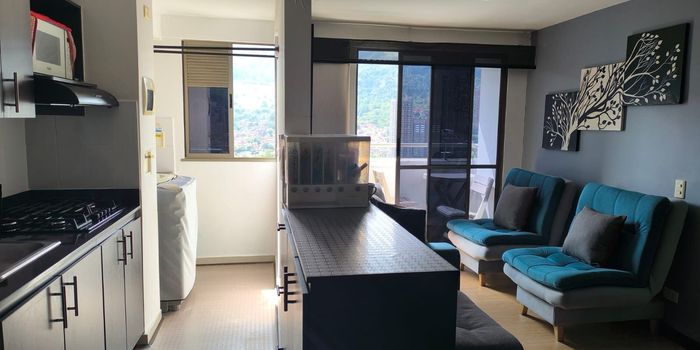 Apartamento para venta en Bello, sector Niquía, con una excelente ubicación en frente del Centro Comercial Puerta del Norte, muy cerca a la estación Niquía del metro, a clínicas, tiendas, supermercados y buenas rutas de transporte. Ubicado en un piso 24, el apartamento cuenta con un área de 65 m2 aproximados, consta de 2 alcobas, 2 baños, closets, salón comedor, balcón, estudio, cocina integral con barra, zona de ropas, calentador, piso laminado, parqueadero cubierto y cuarto útil. En unidad cerrada que cuenta con ascensor, salón social, piscina, juegos infantiles, turco, zona BBQ, parqueadero para visitantes, zonas verdes, placa polideportiva, gimnasio y portería 24 horas. Cuenta con posibilidad de tercera alcoba.
