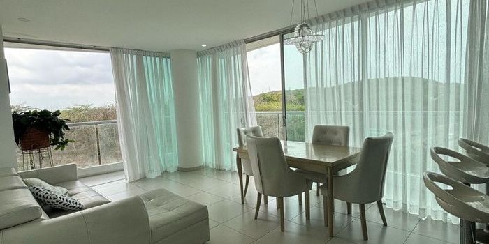 Se vende apartamento de de 120 Mt. Cuenta con Sala-comedor, cocina integral, zona de labores, 3 habitaciones con sus closet, 3 baños, estudio, balcón lateral en L en todo el apartamento. El edificio cuenta con 2 torres, recepción, Car lobby, Salón social, Cancha de squash, Gimnasio, Zona húmeda, Piscina para adultos y para niños, Zona infantil.
