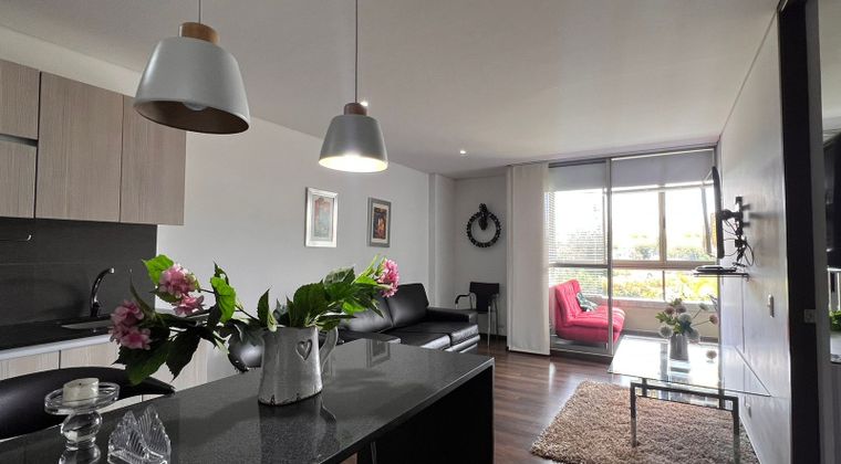 Apartamento en venta en unidad cerrada cerca a via principal, restaurantes, Carulla, facil acceso a rutas de transporte publico, y servicios complementarios. Piso en madera, sala comedor independiente, 1 alcoba con baño en la alcoba principal, cocina integral abierta, balcon y parqueadero independiente cubierto ). Conjunto cerrado con piscina, gimnasio, sauna, turco, parques infantiles, zonas verdes, vigilancia 24 hrs, citofonia y circuito cerrado de tv. *Inmuebles sujetos a verificación de disponibilidad.*