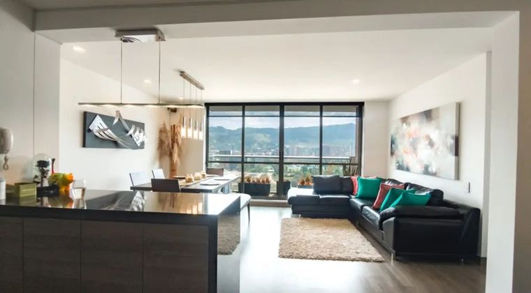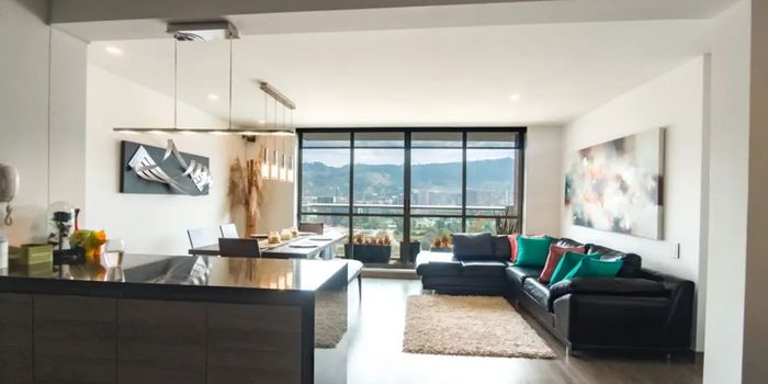 Para mayor información escribanos vía WhatsApp y uno de nuestros agentes inmobiliarios te atenderá. Apartamento con excelente iluminación, cocina abierta con mesón en mármol y zona de lavandería independiente. La cocina se integra a un gran espacio de sala, comedor y estudio, con salida al balcón donde podrá disfrutar una increíble vista. La zona privada cuenta con 3 habitaciones, la principal con walk in closet y baño privado y otro baño para las dos habitaciones, adicional encuentra un estar de alcobas. El conjunto tiene terraza con BBQ, Zona Infantil, 2 salones sociales, un gimnasio completamente dotado, zonas húmedas, y un lobby de recepción tipo hotel.