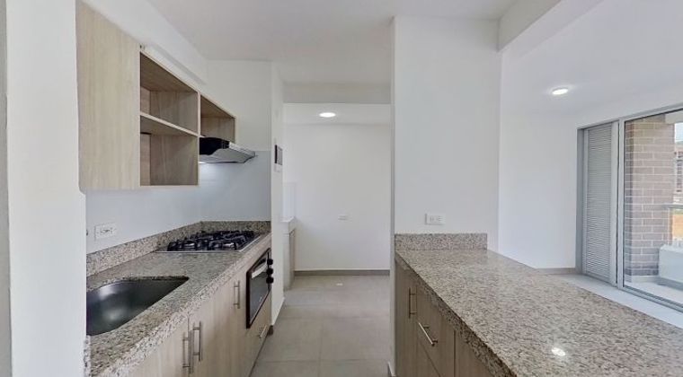 Apartamento de 62 metros cuadrados ubicado en el piso 22. Cuenta con tres habitaciones, dos baños, estudio, cocina integral, vista exterior, depósito y parqueadero cubierto independiente. Con gas natural y pisos en cerámica. Cuenta con un área adicional de balcón de dos metros cuadrados. El edificio tiene dos ascensores y zonas comunes como piscina, zonas húmedas, salón comunal, zona de niños, BBQ, portería y parqueadero para visitantes. Estrato 4, antigüedad de cuatro años. Precio por metro cuadrado construido: ocho millones de pesos.