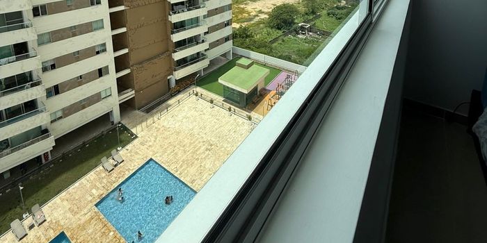 Apartamento con excelentes espacios y hermosa vista interna, consta de una amplia terraza, sala , comedor, cocina integral, cuarto y baño de servicio . Tres cómodas habitaciones, la principal con baño interno, las otras dos compartiendo baño externo. Cuenta con cuarto y baño de servicio, parqueadero interno.El edificio ofrece piscina, gimnasio, baño turco, parque infantil, salón social y reuniones. Planta eléctrica, ascensores.
