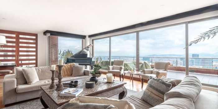 Tenemos para la venta este increíble apartamento sobre los cerros orientales. Está ubicado en la mejor zona residencial de Bogotá, en donde se respira aire puro, zonas verdes y parques y está muy cerca de la carrera séptima en donde se encuentran, bancos, centros comerciales y todo lo que se requiere para vivir cómodamente. Al entrar al penthouse, se encuentra un área social con mucha luz natural. Tiene una linda vista tanto de la sala y alcoba principal hacia la ciudad, además de una vista hacia un jardín que es también una linda montaña con hermosa vegetación y una sala de tv. Cuenta con cuatro habitaciones, cada una con su baño privado. Y, para tu comodidad, podrás disfrutar sus cuatro parqueaderos privados e individuales. ¡Vale mucho la pena verlo! Solicita una cita.