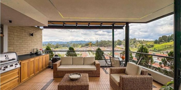 Duplex de 131m2+ Terraza de 24m, 3 habitaciones, 2 de ellas principal con baño y vestier, la auxiliar también tiene baño independiente, en el 2 nivel zona social, cocina abierta, Bbq en terraza, baño social, el apartamento está totalmente remodelado,, parqueadero doble con útil paralelos.