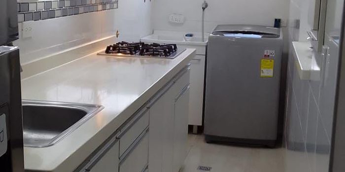 Vendo apartamento de 63m, excelente ubicación. Piso 4 sin ascensor, sala comedor, cocina integral, la alcoba principal con baño y closet más dos alcobas auxiliares con closet, zona de oficios, parqueadero asignado. Del conjunto cerca a transporte público, supermercados, colegios, universidades etc. Ind **********