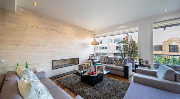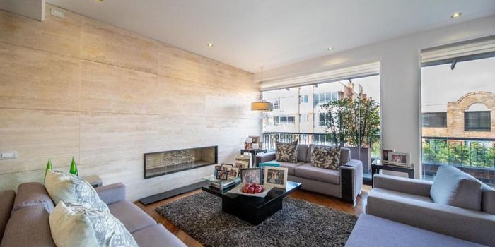 Se Vende espectacular Pent House en Chico Navarra, totalmente remodelado, 5to piso, exterior, vista hacia los cerros orientales, àrea privada: 297, 39 mt2 + 97,42 Terrazas de uso exclusivo: Terraza perimetral con pérgolas y cortavientos en sala, 5 habitaciones c/u con baño privado, la principal con amplio vestier, sala (pared enchapada en mármol travertino), comedor, estudio; cada ambiente independiente, baño social, closet de linos, cocina cerrada moderna: comedor auxiliar, estufa a gas con 5 quemadores, horno eléctrico, campana extractora, lavavajillas, espacio para nevecón doble, amplia zona de lavanderia con ventilación natural, cuarto y baño de servicio. Tiene 4 garajes independientes y deposito. Ascensor privado, pisos en granadillo, cortinas y black outs en todas las habitaciones, cableado estructural en habitaciones. Edificio: año de construcción: 1992, 7 aptos. en total, 2 por piso, planta eléctrica de suplencia total.