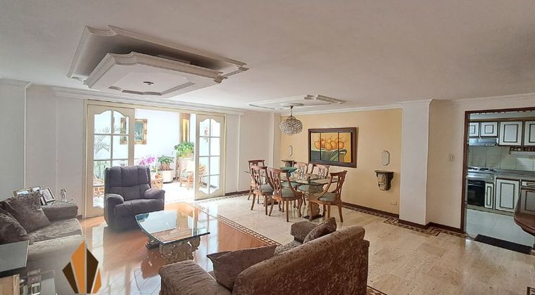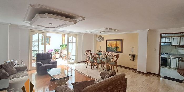 Apartamento en venta en Chicó Navarra, Usaquén Amplio apartamento de 154.63 m², interior, con excelente iluminación natural. Adicionalmente cuenta con 55mts² de un área de uso exclusivo, con tres habitaciones, la principal con baño y estar privado, más habitación de servicio con baño. Tiene cuatro baños, estudio, sala auxiliar, barra mini bar y zona de TV. Cocina integral con red de gas y calentador a gas, vestier, patio, sala-comedor y zona de ropas. Ubicado en zona residencial cerca de Transmilenio Calle 106, Carulla Calle 102 y Sanitas Chico Navarra, con acceso por Autopista Norte, Av. Carrera 19, Calle 100 y 104. El edificio ofrece portería 24 horas, ascensor, citófono, circuito cerrado de TV y parqueadero de visitantes. ¡Contáctanos! 5