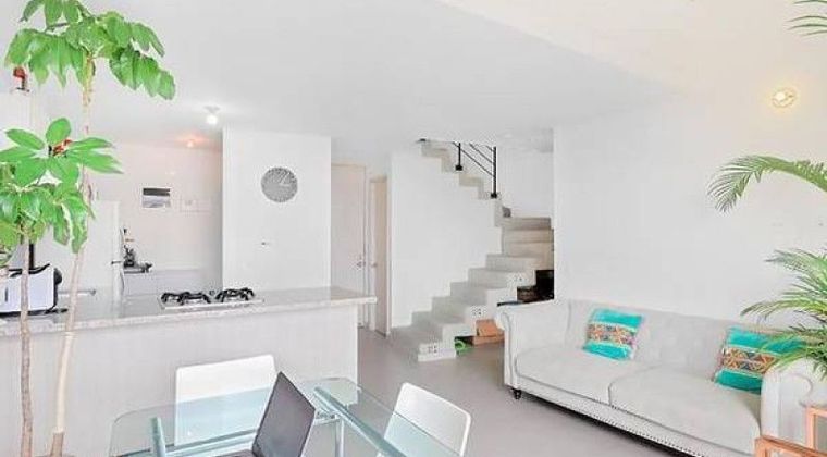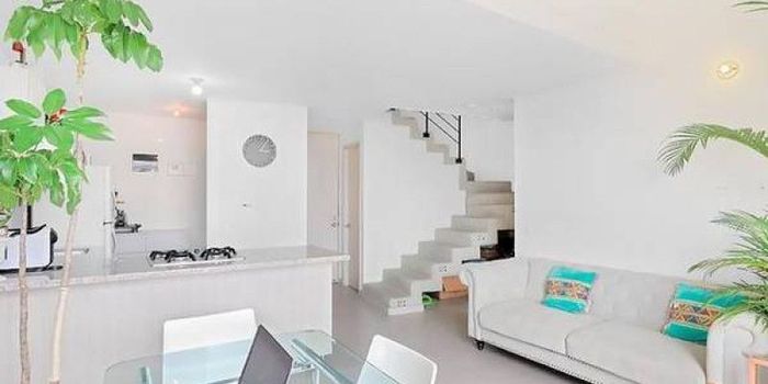 Este apartamento cuenta en el 1 piso con sala comedor, cocina integral abierta , zona de ropas , balcón y una habitación con closet y un baño social. En el segundo piso encontramos la habitación principal con baño y vestier una sala de televisión .